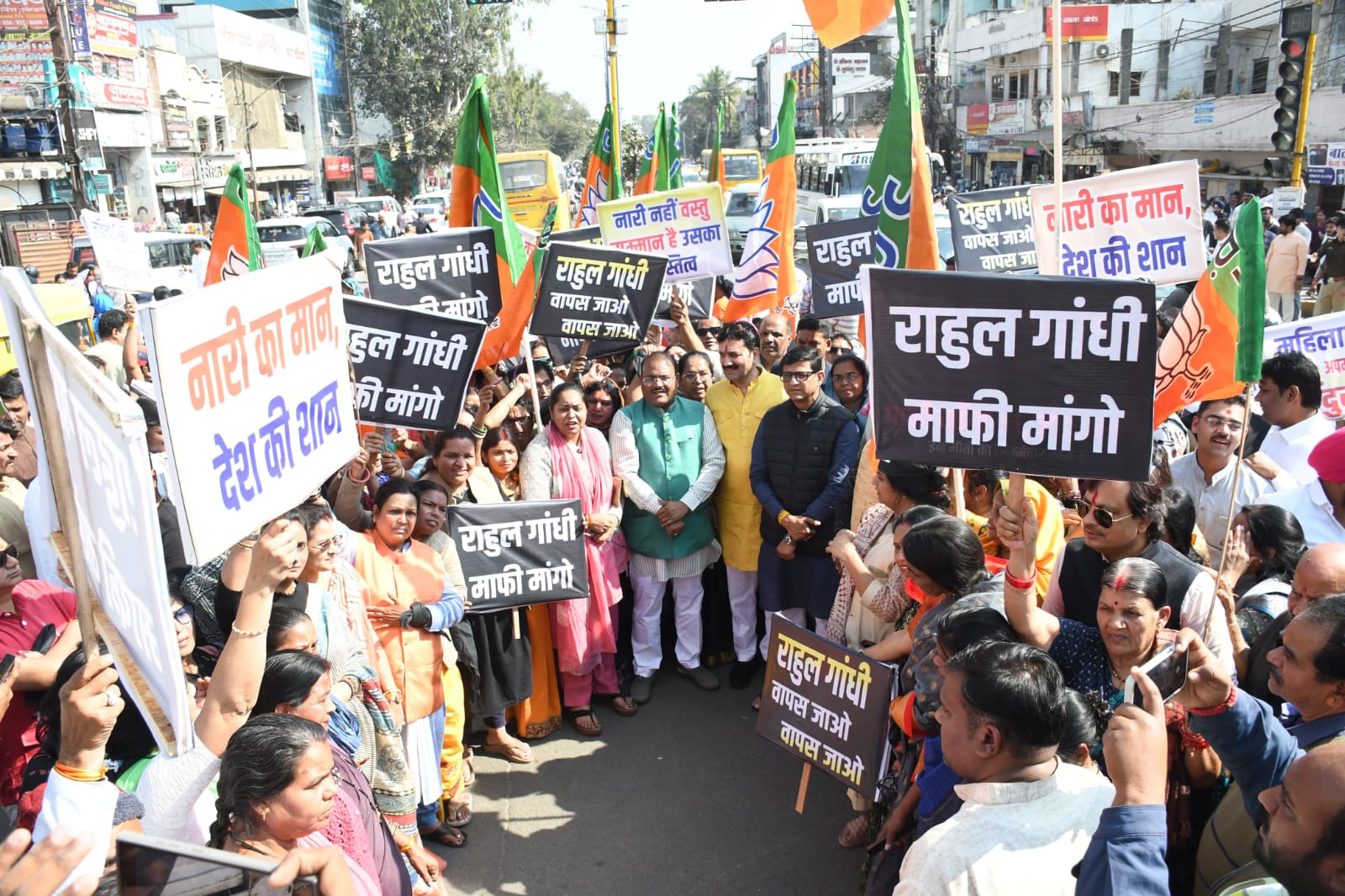 भोपाल। कांग्रेस विधायक फूल सिंह बरैया के महिलाओं को लेकर दिए दूषित बयान पर मुख्यमंत्री डॉ. मोहन यादव, भाजपा प्रदेश अध्यक्ष व विधायक हेमंत खण्डेलवाल एवं पार्टी की वरिष्ठ नेत्रियों ने कड़ी प्रतिक्रिया व्यक्त करते हुए आलोचना की है। ग्वालियर, इंदौर, भोपाल एवं जबलपुर सहित पूरे प्रदेश मेंं भाजपा महिला मोर्चा कार्यकर्ताओं ने राहुल गांधी एवं कांग्रेस विधायक फूल सिंह बरैया के खिलाफ विरोध प्रदर्शन कर बरैया से सार्वजनिक माफी एवं कांग्रेस से निष्कासन की मांग की है।