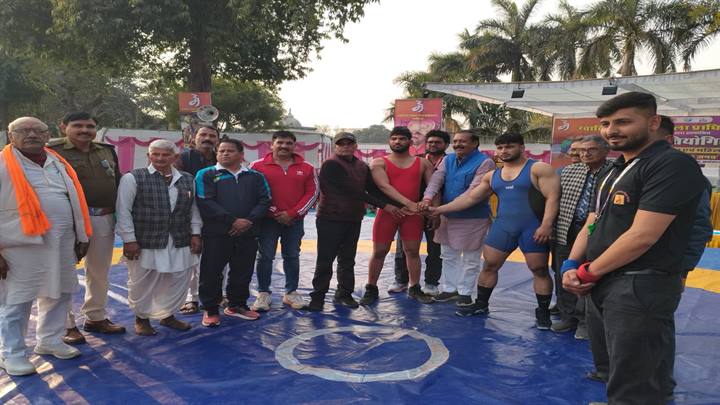 ग्वालियर। श्रीमंत माधवराव सिंधिया ग्वालियर व्यापार मेला में बुधवार से संभाग स्तरीय कुश्ती प्रतियोगिता का शुभारंभ हुआ। प्रतियोगिता में विभिन्न वर्ग की कुश्ती में पहलवानों ने दांव-पेच दिखाए। दंगल के मुकाबलों में मुख्य अतिथि के रूप में पूर्व अध्यक्ष, मध्यप्रदेश खाद बीज विकास निगम महेन्द्र सिंह यादव एवं अध्यक्षता सत्येन्द्र रायखेडा अध्यक्ष उडान संस्था ने की।