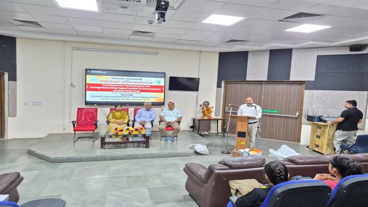 यह प्रशिक्षण पोषक तत्वों से भरपूर खाद्य पदार्थों के निर्माण एवं खाद्य प्रसंस्करण आधारित उद्यमिता पर केन्द्रित है। ज्ञात हो राज्य शासन द्वारा वर्ष 2026 को “किसान कल्याण वर्ष” के रूप में मनाया जा रहा है। कार्यक्रम में कुलसचिव डॉ. अजय कौशल ने कहा कि युवा शासन की योजनाओं का लाभ लेकर स्वरोजगार स्थापित कर सकते हैं। आज स्वास्थ्यवर्धक और कम शर्करा व तेल वाले खाद्य उत्पादों की मांग बढ़ रही है, जिससे इस क्षेत्र में उद्यमिता की अच्छी संभावनाएँ हैं। तकनीकी सत्र में निदेशक विस्तार सेवाएँ डॉ. वायपी सिंह ने जैविक एवं संरक्षित खेती की उन्नत तकनीकों की जानकारी दी। कृषि विज्ञान केन्द्र के वरिष्ठ वैज्ञानिक एवं प्रमुख डॉ. शैलेन्द्र सिंह कुशवाह ने खाद्य प्रसंस्करण उद्योग में स्वरोजगार के अवसरों पर प्रकाश डाला। इस अवसर पर डॉ. अमिता शर्मा ने सहजन के औषधीय महत्व की जानकारी दी। कार्यक्रम की संयोजक डॉ. रीता मिश्रा ने फोर्टिफाइड एवं बायोफोर्टिफाइड खाद्य पदार्थों के निर्माण से जुड़े उद्यमिता अवसरों पर जानकारी दी। कार्यक्रम का संचालन डॉ. राजीव सिंह चौहान ने किया।