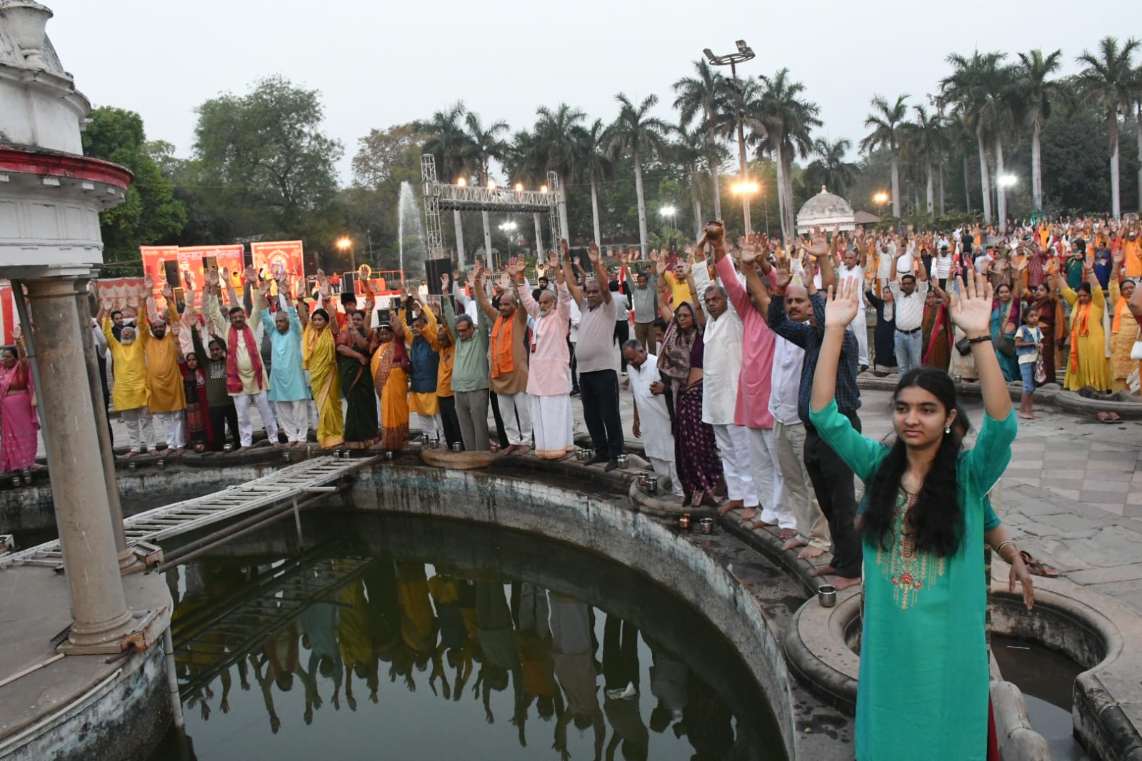 ग्वालियर। जल विहार के तैरते हुए मंच पर लोकवाद्यों की धुन पारंपरिक नृत्य और संगीत की ध्वनि से नवसंवत्सर का स्वागत करते युवा कलाकार तो दूसरी तरफ सैकड़ों नागरिकों ने एक साथ अर्घ्य देकर नववर्ष के सूर्य का स्वागत भी शहरभर के लोगों द्वारा किया गया।